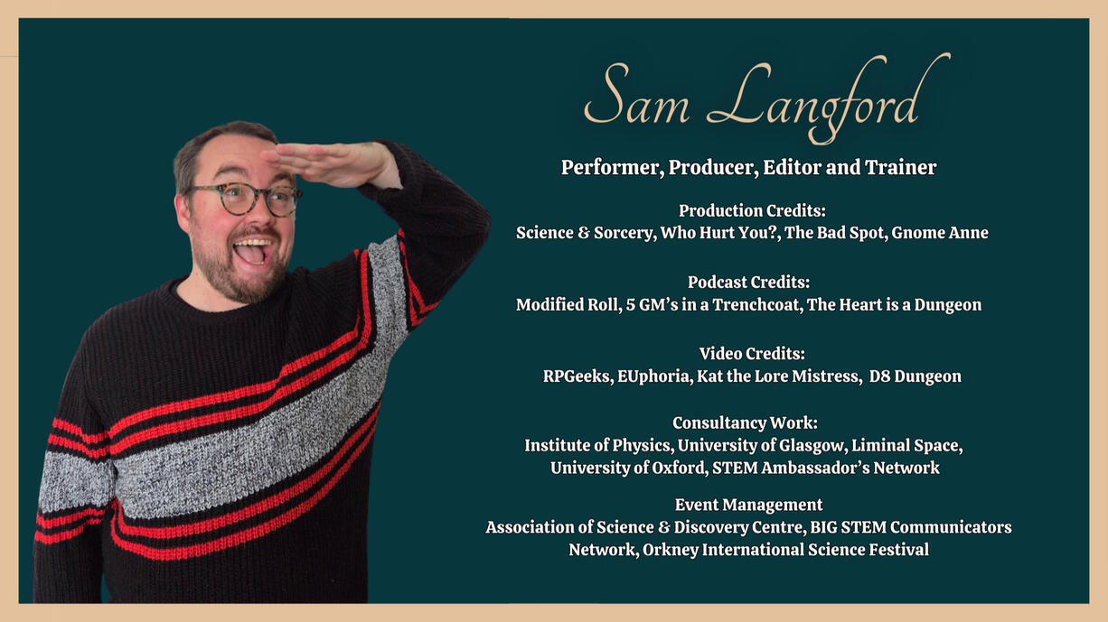 "Creativity is the hallmark of Sam's campaigns. With an ingenious mind that seemingly knows no bounds, Sam weaves intricate narratives that capture your attention from the second you take your seat. Each environment, encounter, and NPC is meticulously crafted with attention to detail, fostering an immersive and entertaining experience.""Sam set a fantastic atmosphere and gave us the space to develop our characters and impact the world while keeping up the pace of a tense investigation - all within a 2.5 hour one shot! Sam is a really inclusive DM who will ensure every character gets a chance to shine and will respect you and your needs from the game including safety tools, great time management and excellent communication with players.""Sam is calm, INCREDIBLY professional, writes top-tier stories, and strikes the perfect balance between allowing player freedom and carefully guiding us to the interesting stuff. Also, his session zeroes are a work of art, and both his table rules and his worlds themselves are extremely inclusive.""If Sam isn't on your shortlist to invite to your tables, you're not doing it right"